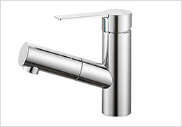 簡単操作でお子様からお年寄りの方まで操作しやすい水栓です。ホースが引き出せるので洗面器の隅々まで届きます。