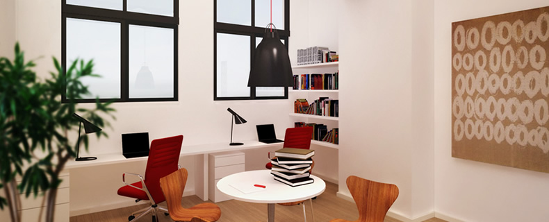「ラクレイス」シリーズ初となる「SOHO」対応が可能な仕様としました。 机や棚などの備え付け家具を設け、充実した執務スペースを実現。 さらに天井を高くし、ロフトを設けることにより、開放感をもたせ、理想的な空間を創出しました。