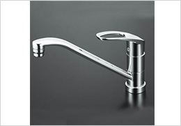 ひとつのハンドルで流量と温度を操作できるタイプの水栓です。片手でも楽にさまざまな調整が可能です。